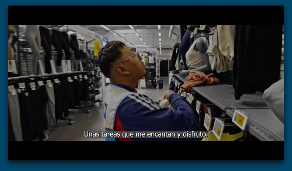 El relato se centra en su pasión por el deporte y su esfuerzo constante por abrirse camino en ese ámbito. Aunque comenzó trabajando como jardinero, David no dejó de luchar hasta cumplir su verdadero sueño: formar parte del equipo de Decathlon Xanadú, en Arroyomolinos. Allí ha encontrado no solo un empleo, sino también un entorno en el que se siente valorado y apoyado por sus compañeros y responsables, como Nora y Paula, quienes lo acompañan en su crecimiento profesional.